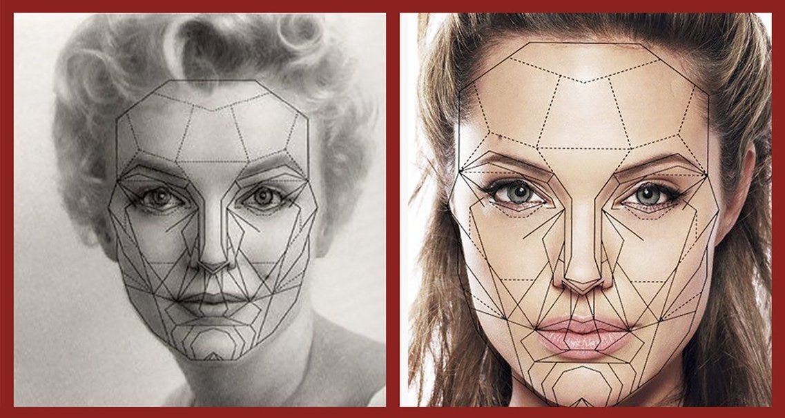 (as you can see, Marilyn Monroe and Angelina Jolie both have the perfect facial symmetry, based on the laws of nature)