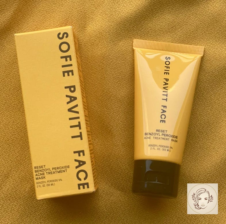 Sofie Pavitt Face Reset BP Mask is a product I’ve used for a while now, and it always works well for me. With 5 percent BP, you leave it on for 3 to 5 minutes and let it do the work. It is not drying and it is very effective. It is also the only BP mask I use that is not a leave on gel.
